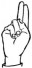 На ћирилици написано УМИЉЕН ТОПЛИЧАНИН састоји се из 16 слова [?]. Исписано ћириличном једноручном азбуком за глувонеме: